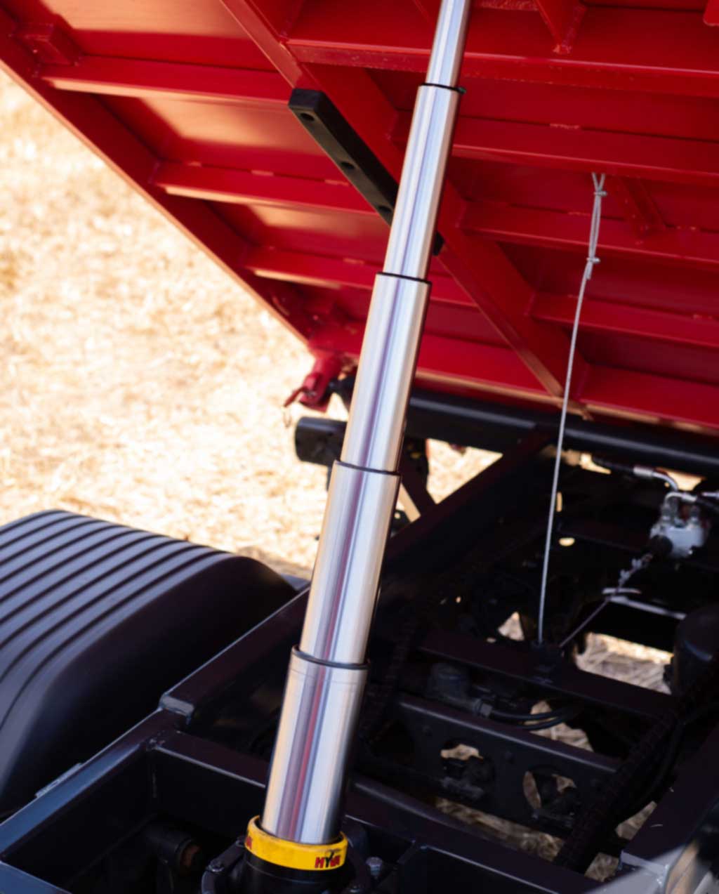 100 Prozent hochfester Stahl macht den Rahmen besonders stabil. Durch die Vorbehandlung der Oberflächen und Pulverbeschichtung ist der Unterbau bestens gegen Korrosion gewappnet. Die Kipper sind dadurch robust und langlebig. Die an den Fahrzeugrahmen geschraubten Vorrichtungen sind ab Werk fahrzeuggebunden auf Maß vorbereitet – das garantiert eine schnelle und einfache Montage des Aufbaus auf das Fahrzeug.